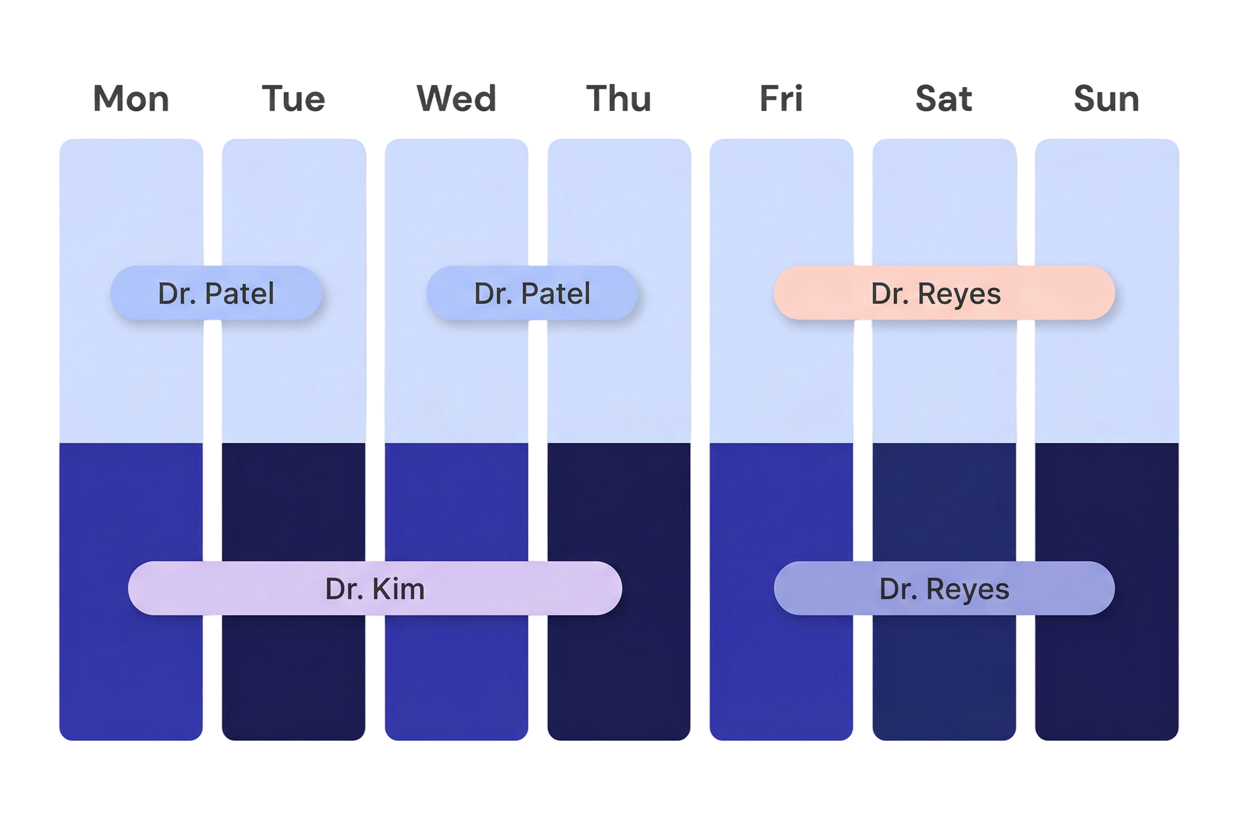 Different on-call providers during the week versus weekends? Handled. A specific provider on call Monday through Thursday and another one covering Friday through Sunday? The AI knows. Holiday coverage with entirely different routing rules? That’s accounted for, too.