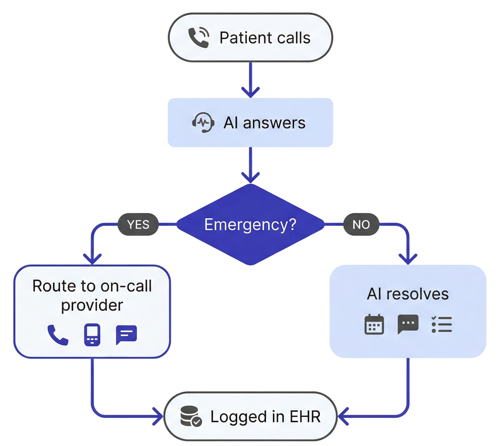 The routing logic is configured based on your practice’s requirements and can be adjusted anytime, so if your on-call schedule changes, the AI changes with it.