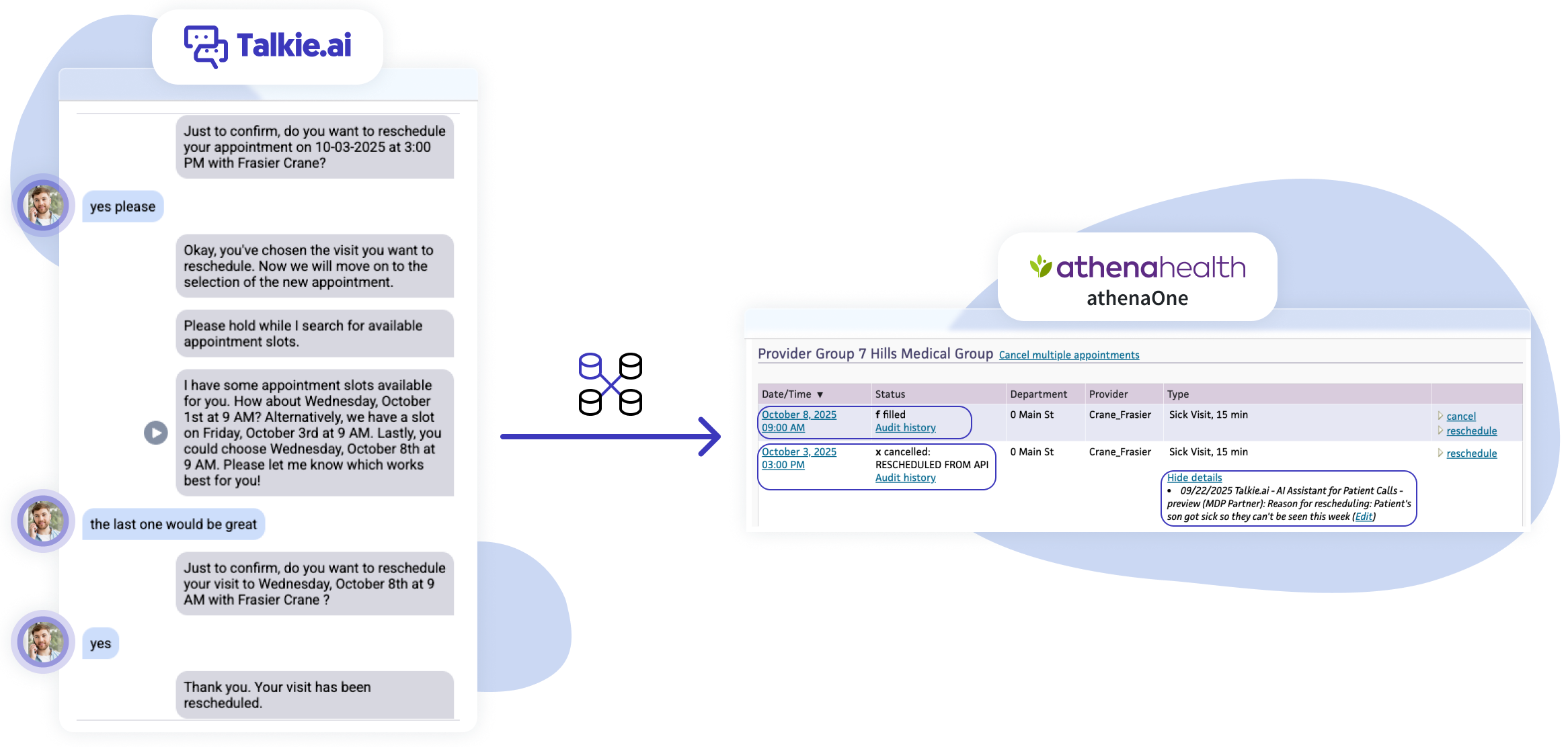 Our AI agents work within your existing workflows, picking up calls instantly, scheduling appointments, and updating patient records directly in your athenaOne—just like a human receptionist would.