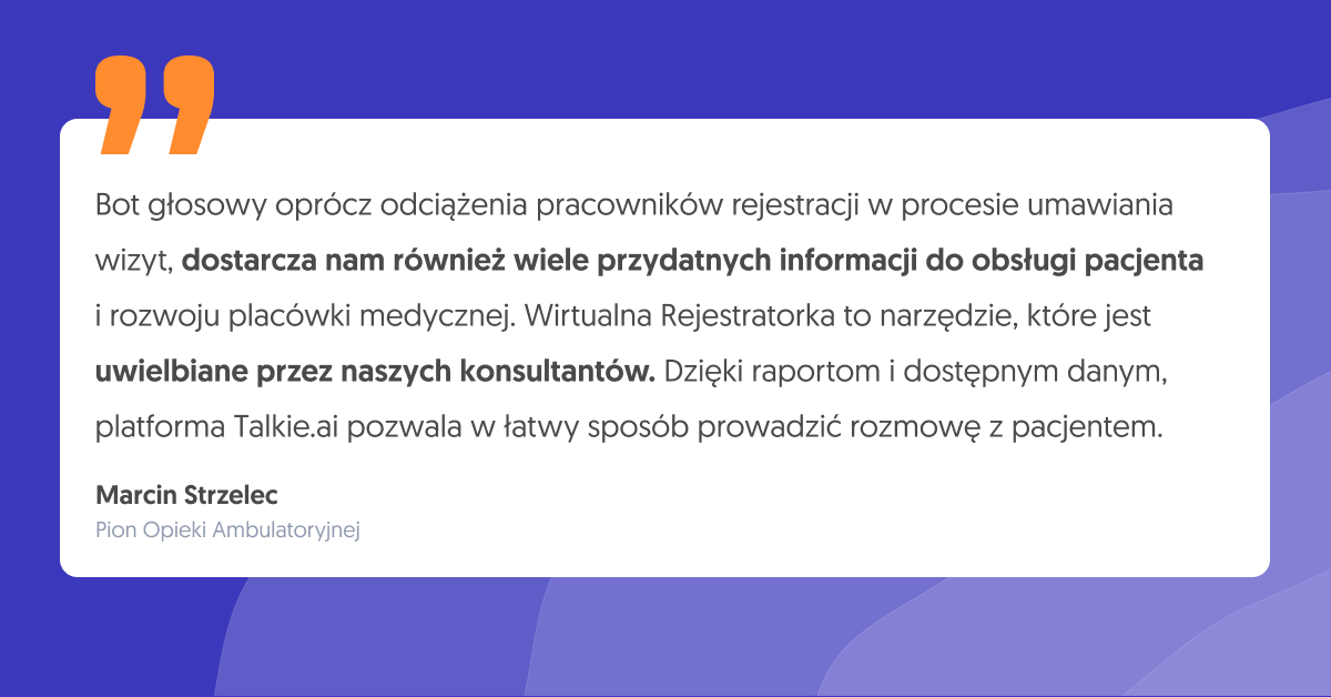 - Przeznaczenie bota dla konkretnego typu placówki medycznej – sieci, szpitala, przychodni.